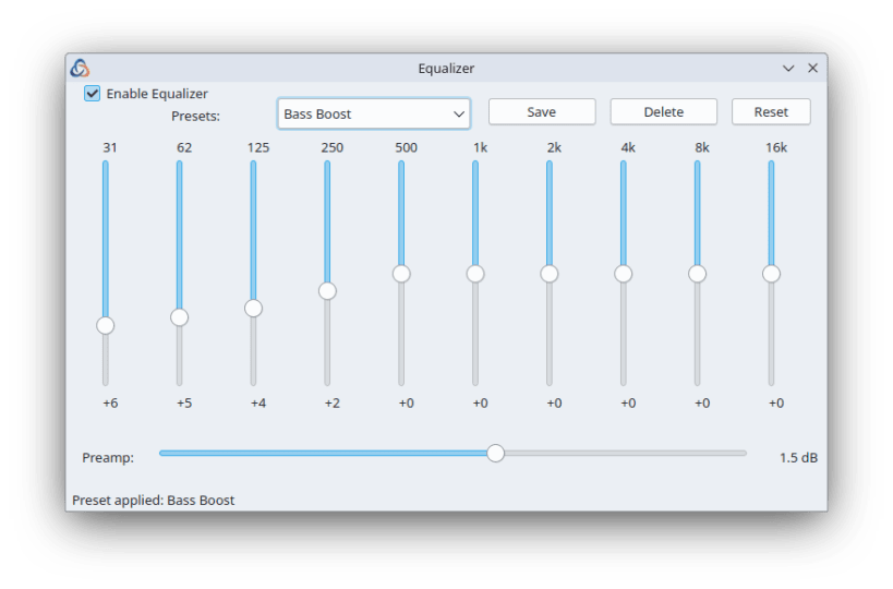• 10-band audio equalizer with presets