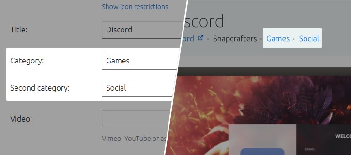 You can choose up to two categories amongst which your app will be featured. The category will aid discoverability and helps the user determine whether your app fits their needs. Make sure the category is relevant to your snap.