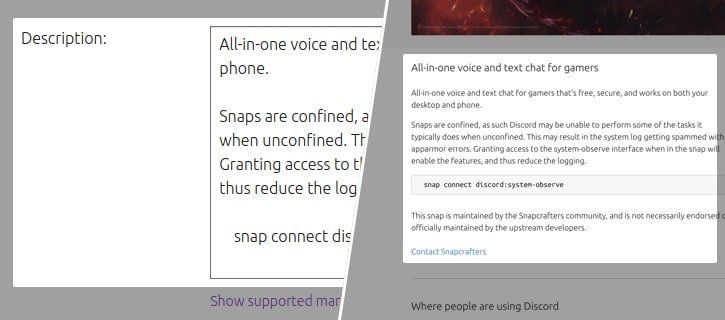 Your snap’s gallery will communicate what using it is like, it showcases the UI, and gives a preview of what to expect from it. The gallery can include up to 5 items that can be videos, gifs and images. We recommend using gifs or videos to generate more engagement, particularly when embedded in social campaigns. The store supports embedding videos from YouTube, Vimeo and Asciinema, the latter is excellent for showcasing your terminal applications.