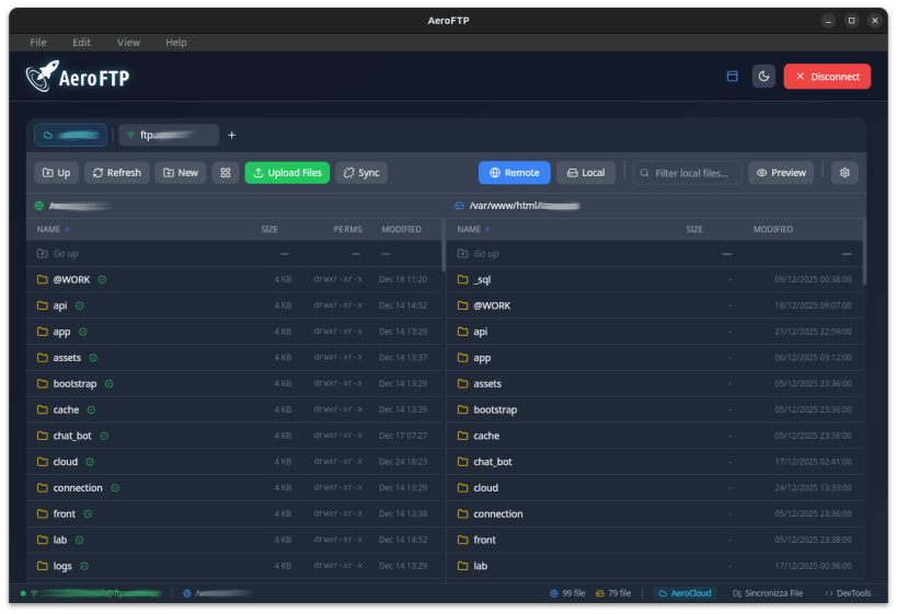AeroFTP is a modern file transfer client that goes beyond traditional FTP. Connect to FTP/FTPS servers, SFTP, WebDAV, S3-compatible storage, and major cloud providers — all from a single, elegant interface.