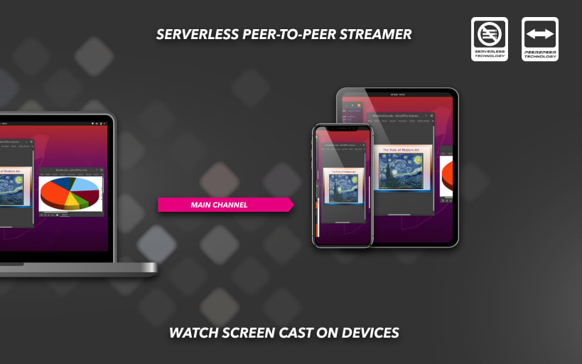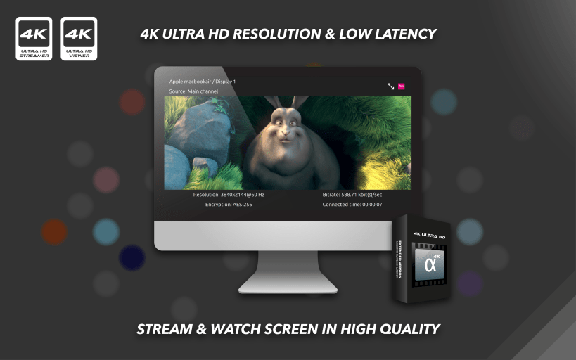 Experience brilliant 4K Ultra HD video quality in an extended version of alfacast. Share and split your live video screen stream to many devices simultaneously. App allows you to broadcast and to watch any content from desktop. Stay secure with alfacast while watching live streaming, the app supports end-to-end encryption technology. Automatic discovery technology will allow you to enjoy using the app. Forget about logins, installation and the long process of setup video broadcast servers, for alfacast it is simply not necessary. Stream your content from a video camera apps, photo album apps, stream video from player apps, show presentations, slides, photos or pictures anywhere and anytime!