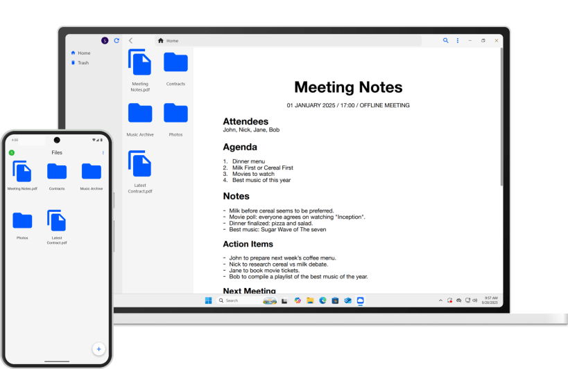 Organize your documents, images, videos, and more into folders, and quickly preview files without opening them — perfect for managing your personal or work archive. Keep your archive under control: sync your files across devices via a self-hosted server, so everything is accessible wherever you are.