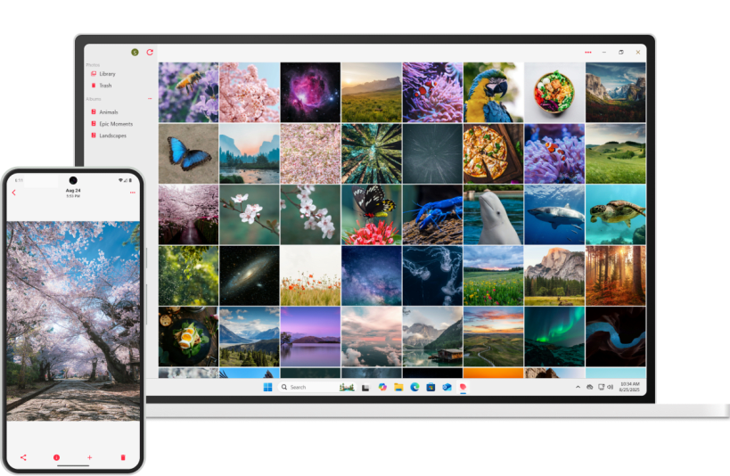 It supports all popular image and video formats — no conversion required. You can organize your photos into albums and write personal notes directly on each photo. Once your gallery is set up, you can sync it across devices via a self-hosted server, letting you view your photos anywhere. If you already use Amphi Notes, Amphi Music and Amphi Cloud, your notes, music library, and files can also be synced through the same server.