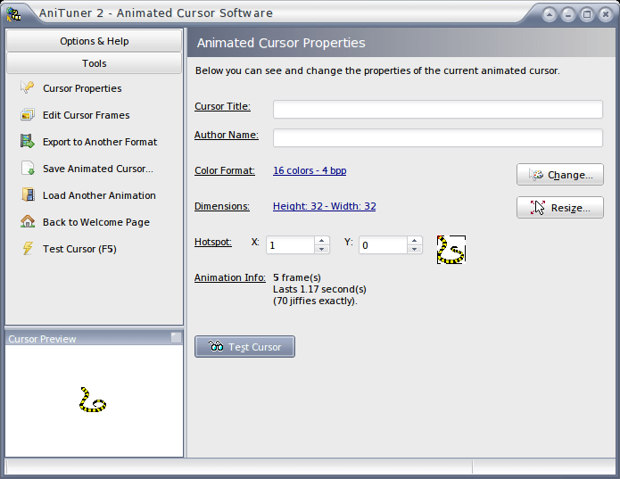add, edit, move, copy, paste and remove frames, change their timing; modify them in your own favorite external image editor and then save changes back to the animated cursor in some clicks.