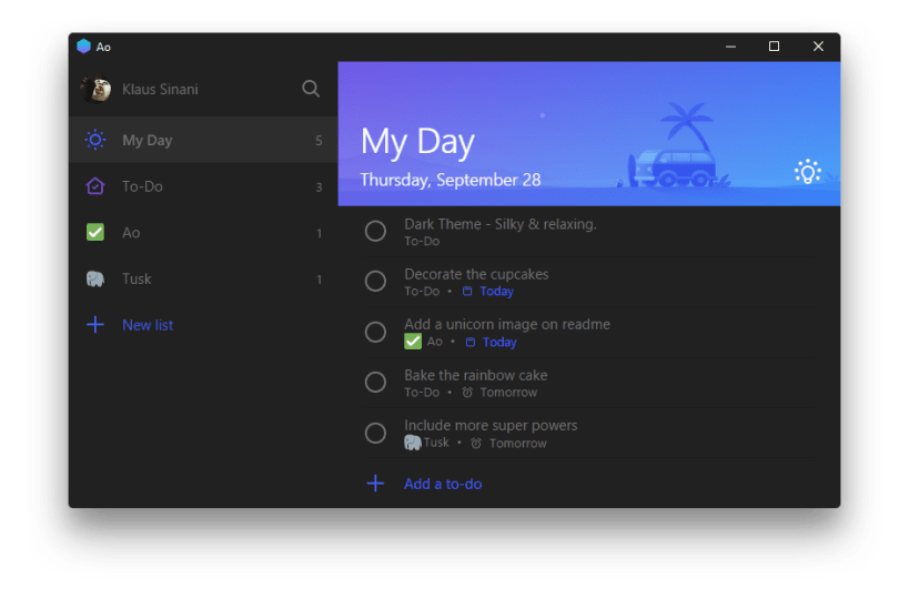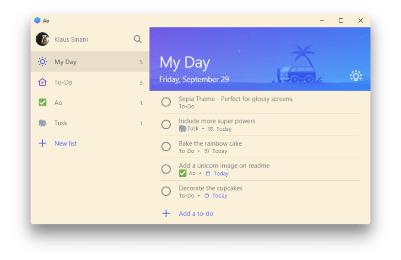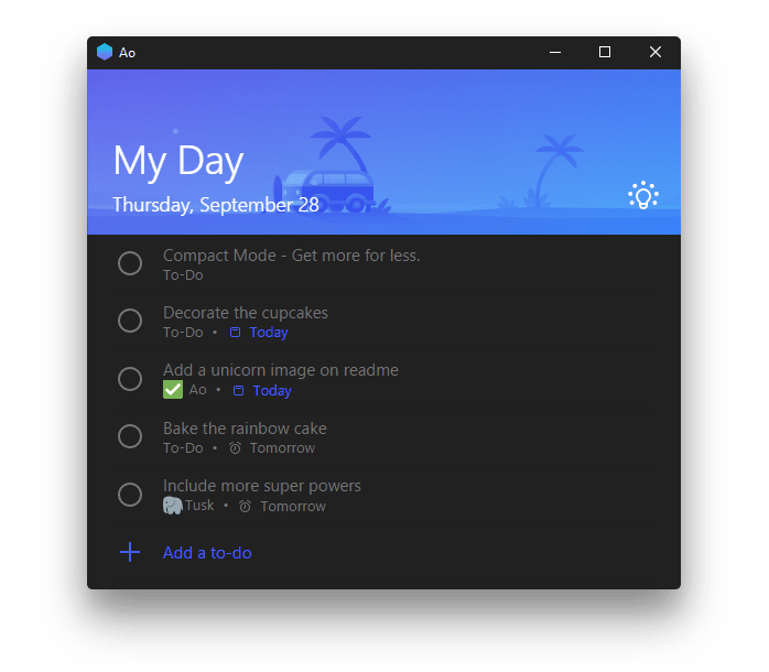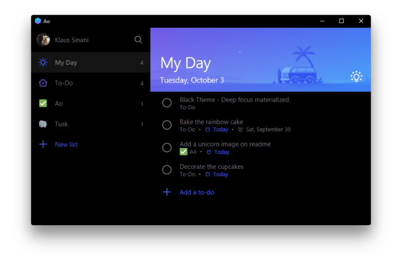 Ao is an unofficial, featureful, open source, community-driven, free Microsoft To-Do app that is used by people in more than 120 countries.