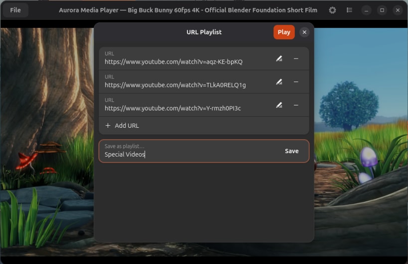 Aurora is a modern media player for GNOME built on the power of MPV. Play any video or audio format, stream YouTube and Twitch, load IPTV playlists, and enjoy hardware-accelerated playback — all from a clean, native GTK4 + libadwaita interface.