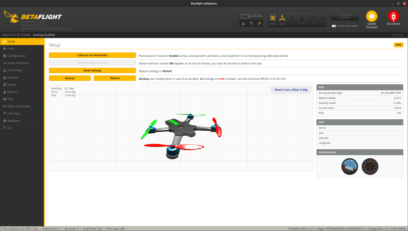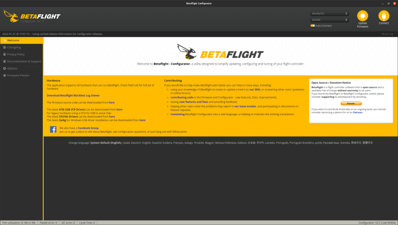 Betaflight Configurator is a crossplatform configuration tool for the Betaflight flight control system. It allows you to configure the Betaflight software running on any supported Betaflight target. Various types of aircraft are supported by the tool and by Betaflight, e.g. quadcopters, hexacopters, octocopters and fixed-wing aircraft.