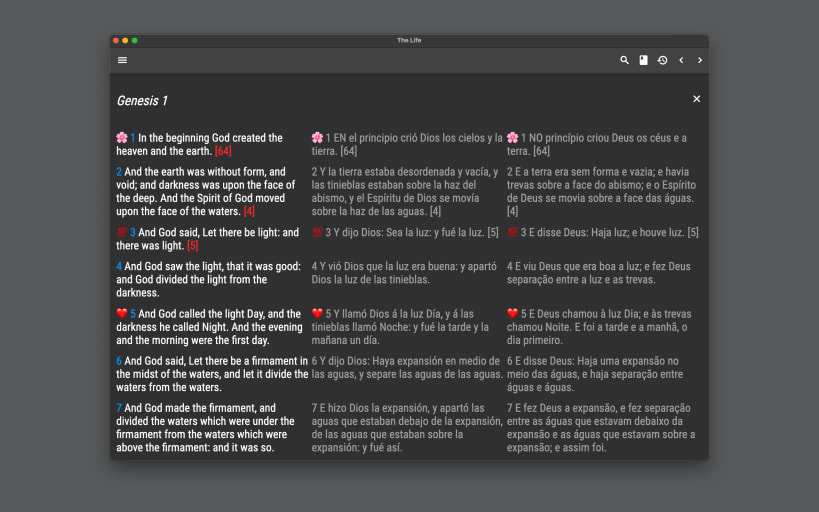 • Easy to use with quick searches and shares, favorites, parables, articles, cross-references, but also includes several fonts for people having visibility impairs and a rich clipboard functionality allowing you to copy several verses and chapters of different books before sharing the result.