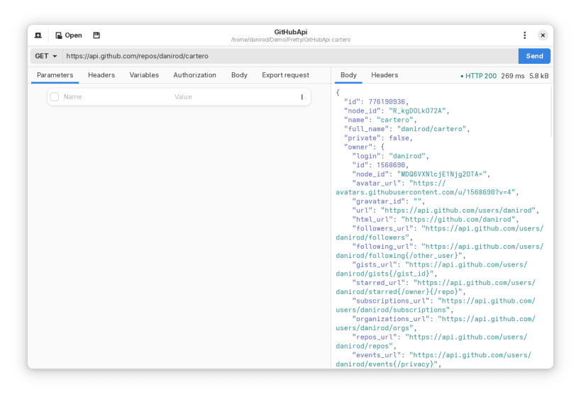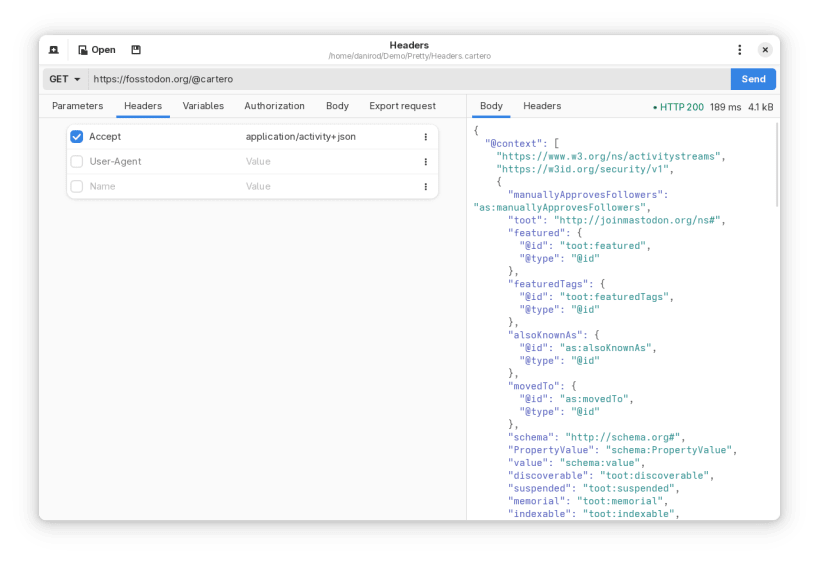 Cartero is a graphical HTTP client that can be used as a developer tool to test web APIs and perform all kind of HTTP requests to web servers.