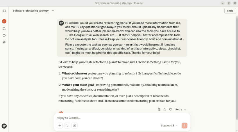 Claude Desktop is an unofficial Electron-based desktop app that brings Claude AI straight to your Linux desktop. Enjoy a smooth, fast, and distraction-free AI experience without relying on a browser.