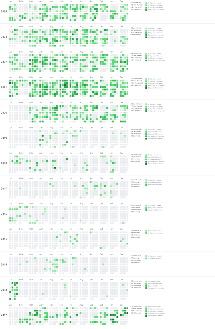 A Rust application that generates a visual representation of commit activity across multiple Git repositories. This tool helps you visualize your contributions over time, making it easier to see patterns in your coding activity.