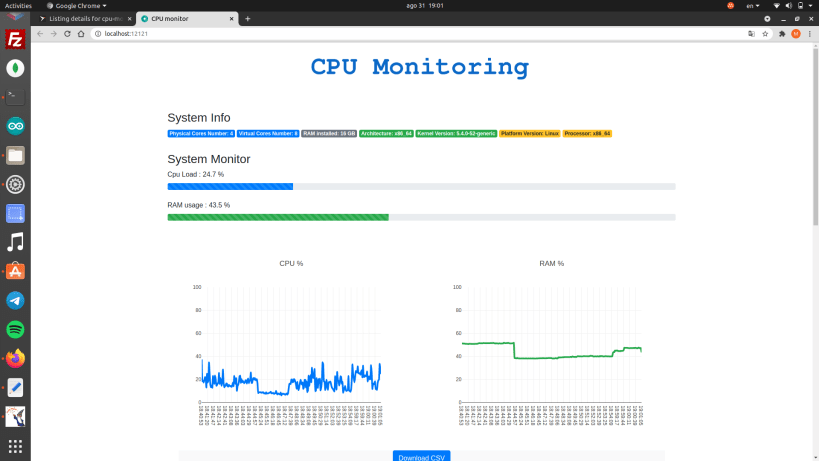 It's possible to observe the cpu behavior in a graph and download the data via CSV. The second page shows the installed USBs, PCI and gives some more informations about the system