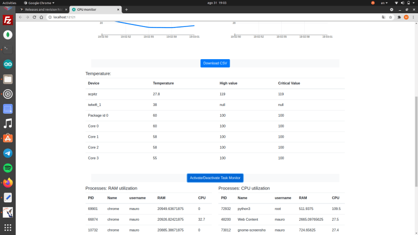 To monitor the temperature and check the processes "htop-like" the application needs hardware permission.