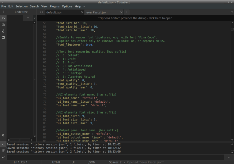 CudaText is a cross-platform text editor, written in Object Pascal. It is open source project and can be used free of charge, even for business. It starts quite fast: ~0.3 sec with ~30 plugins, on Linux on CPU Intel Core i3 3GHz. It is extensible by Python add-ons: plugins, linters, code tree parsers, external tools. Syntax parser is feature-rich, from EControl engine.