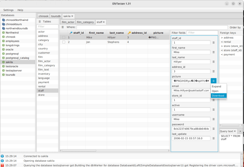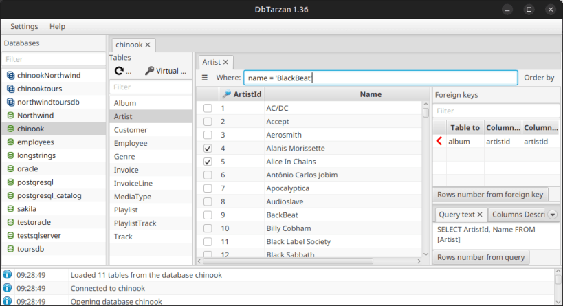 You can query the tables using where clauses or order them with the Dbtarzan user interface.
