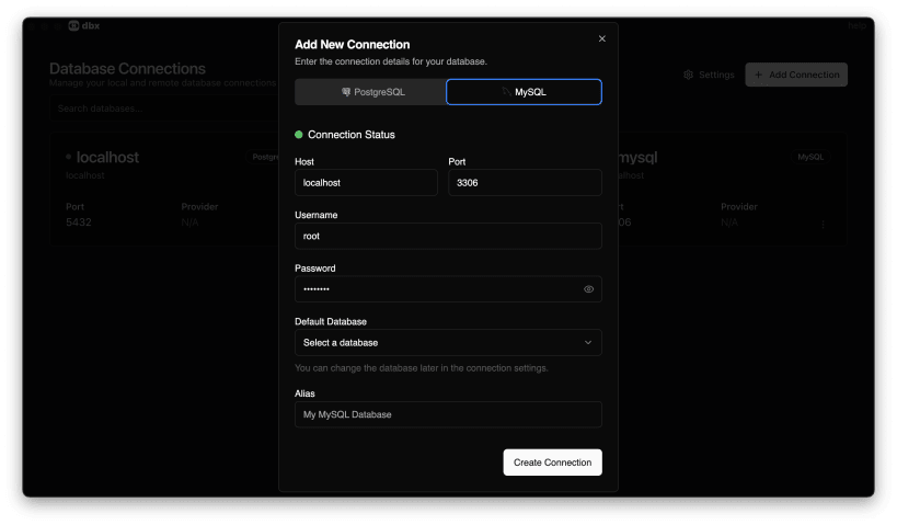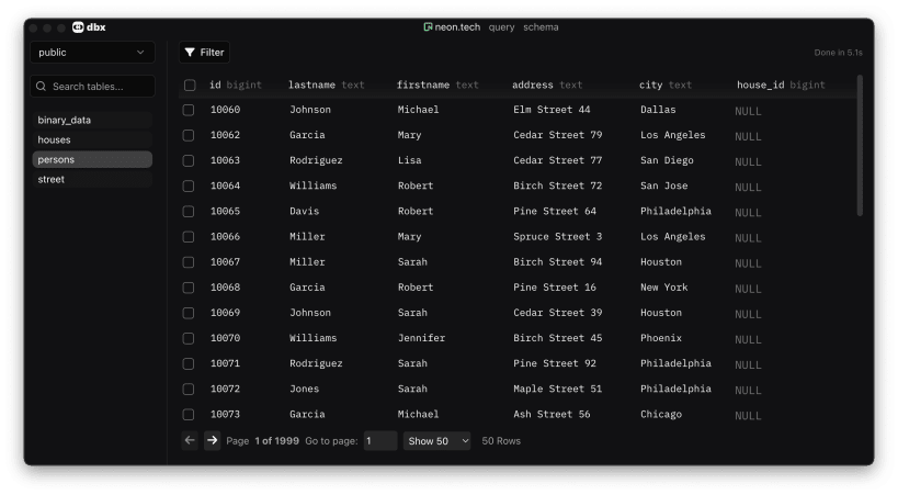 DBX is a lightweight, database tool for developers with support for PostgreSQL, MySQL, SQLite and more!