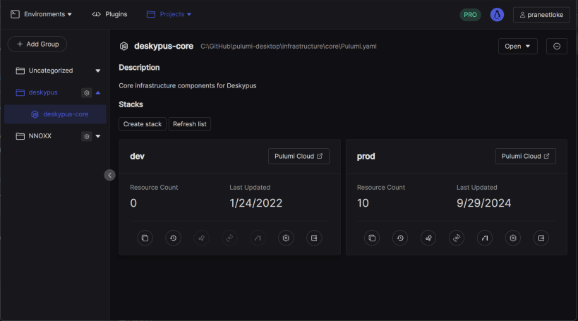 Pulumi desktop app that aims to help you manage your Pulumi projects.