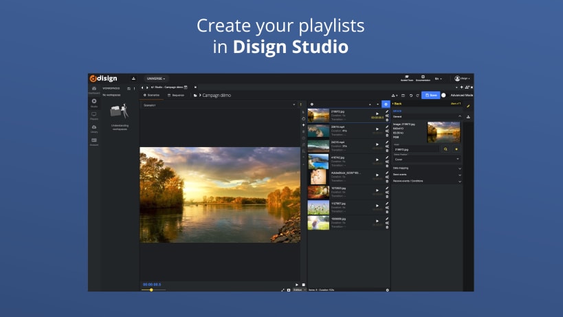 With Disign Studio, you can create custom digital signage campaigns from your web browser. Once your campaign is created, you can deploy it to all of your Linux devices with a single click.
