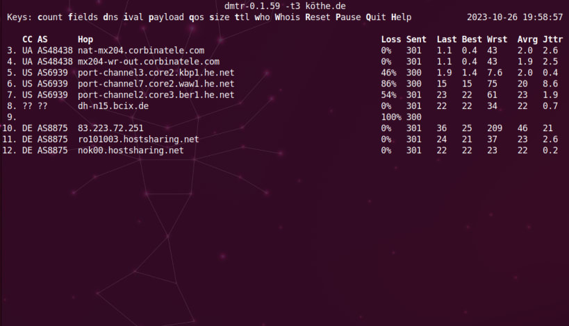 CLI network diagnostic tool based on parsing system 'ping' output with functionality of 'traceroute' inspired by ncurses 'mtr'