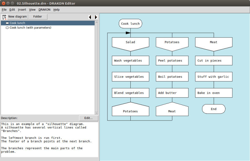 Software developers can build real programs with DRAKON Editor. Source code can be generated in several programming languages, including Java, Processing.org, D, C#, C/C++ (with Qt support), Python, Tcl, Javascript, Lua, Erlang, AutoHotkey and Verilog.