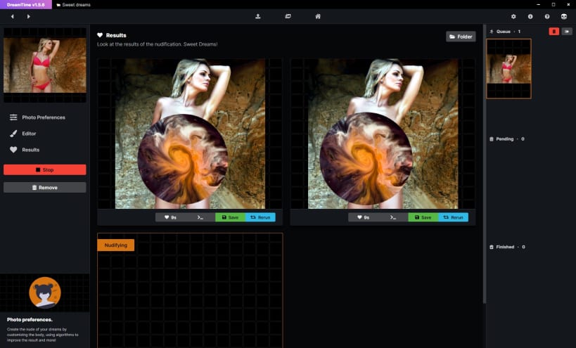 Its modern user interface is very easy to use and it has many new options to experiment and get the best result, also incorporates a an improved version of the DeepNude algorithm that generates better fake nudes.