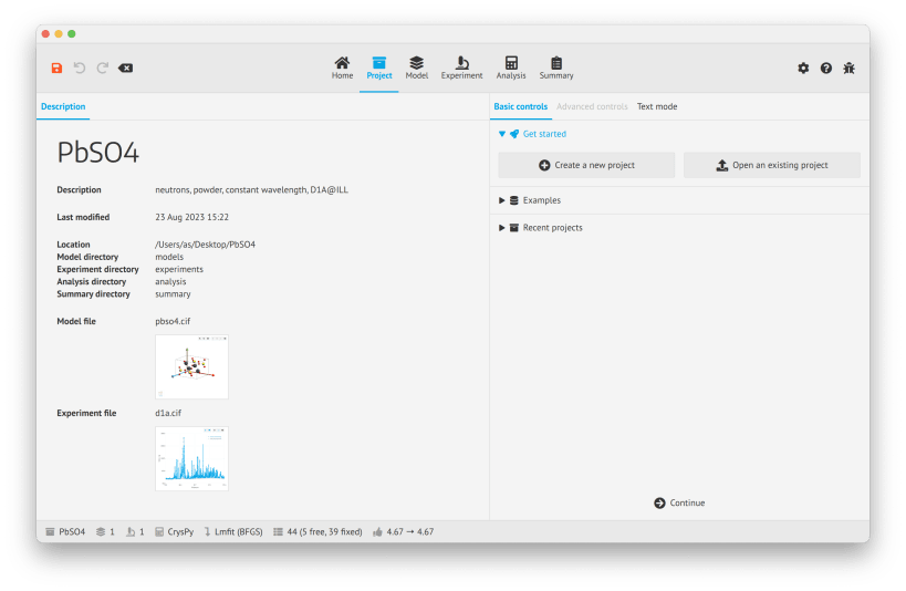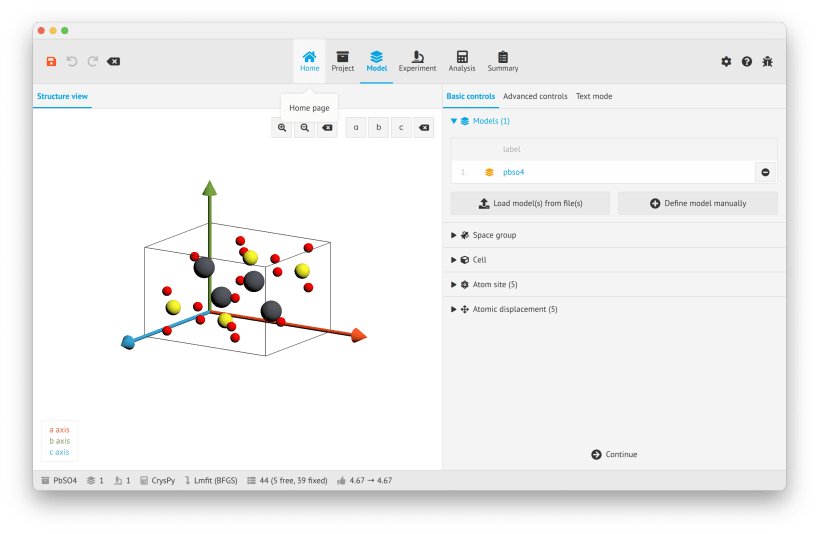 An intuitive and user-friendly application which integrates some crystallographic libraries such as CrysPy and CrysFML (experimental). Allowing for the simulation of diffraction patterns based on structural models and refinement against experimental data.