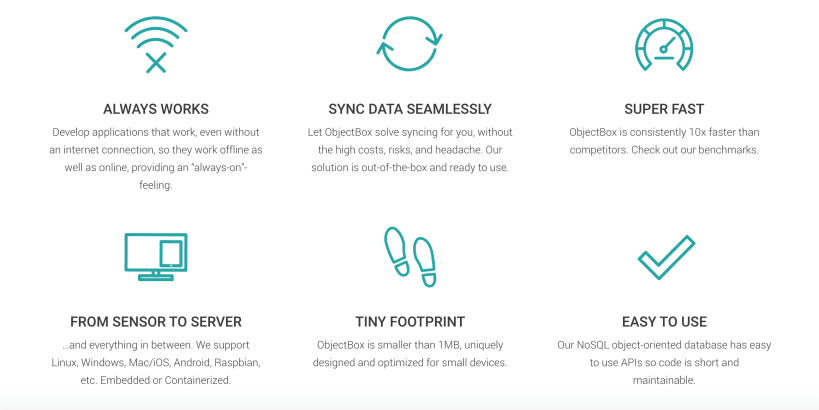Combining ObjectBox’ speed and ease of use with EdgeX Foundry™ IoT Edge Platform (EdgeX). EdgeX Foundry users can now compute millions of data points on the edge with minimal latency. ObjectBox’ small footprint of less than 1MB makes the database uniquely suited for small devices while the high performance on IoT edge devices and gateways, as well as fog nodes, allows you to compute more data on the edge with your existing hardware. Combining the speed and size advantages of ObjectBox on the EdgeX platform, we empower companies to analyze more data locally on the machine, faster than ever before.