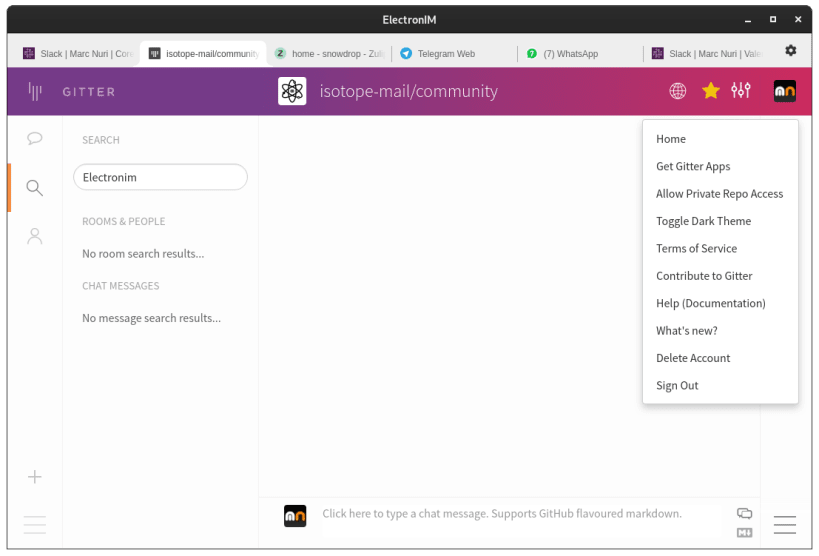 Check the GitHub repository (https://github.com/manusa/electronim) for documentation and source code.