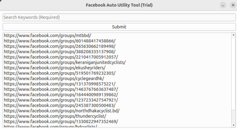 The Facebook Auto Utility Tool is designed to automate various tasks on Facebook. It allows users to input specific search keywords, performs a search on Facebook, and extracts links from the search results. Additionally, the tool offers advanced automation features, such as automatically joining Facebook groups based on the extracted links, making it highly efficient for streamlining group membership and other Facebook-related activities.