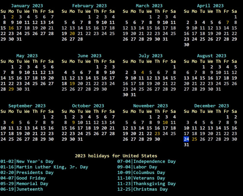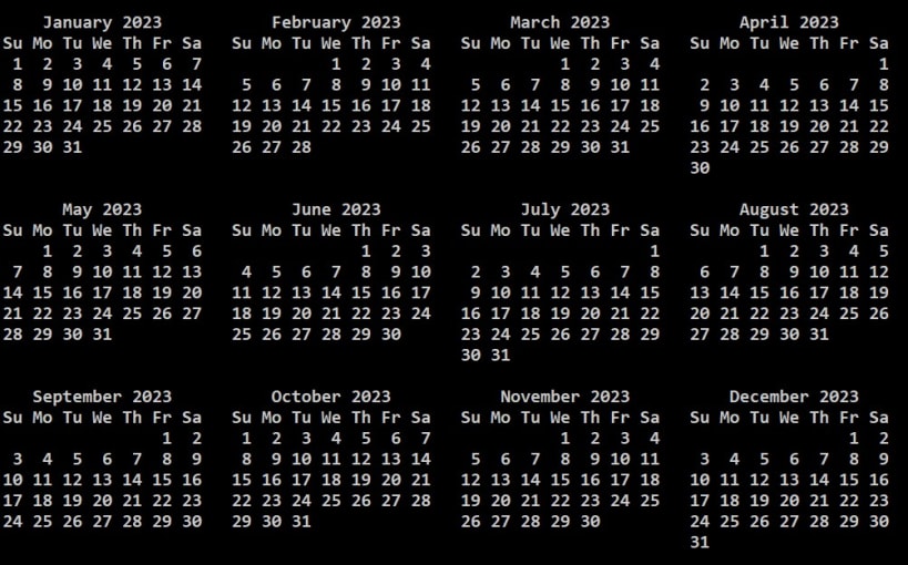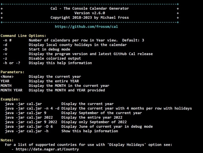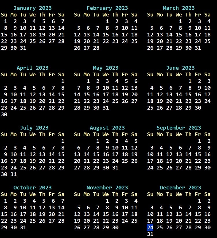 fCal is a command line calendar utility. It will display a calendar on the command line with any month/year requested. Defaults to the current year.