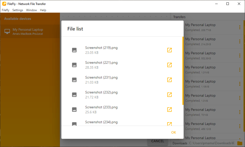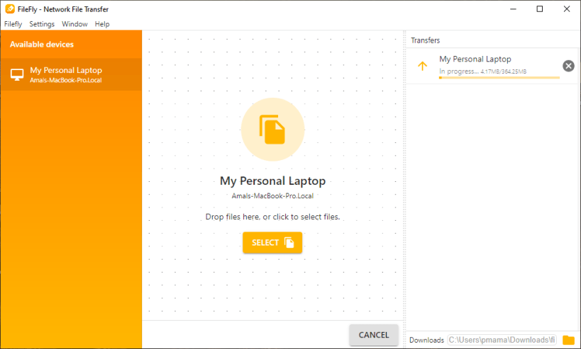 Cross platform wifi file sharing application. Transfer files between multiple Linux devices on the same network (LAN file sharing). Filefly also supports sharing of files between Linux and Windows 10 or 11, and between Linux and Mac OSX devices in the same LAN, Private network, or VPN (VPN file sharing).