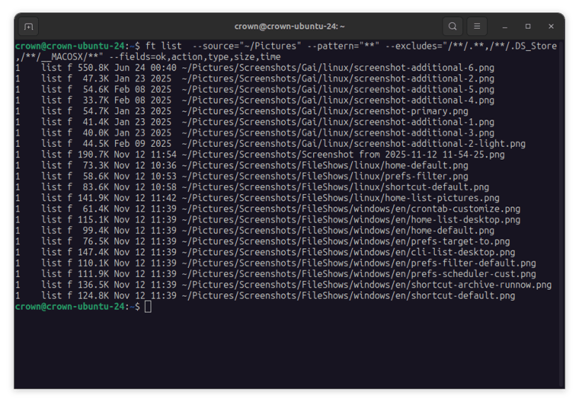 Customisation: Write custom rule scripts for complete command over file operations, similar to writing a Makefile, via the open-source CLI tool. The included CLI tool, ft, is accessible as fileshows.ft after installation. Users are encouraged to create a shell alias (e.g., alias ft=fileshows.ft) for convenient direct access.
