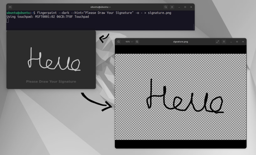 This utility lets you draw using your laptop's touchpad. Pressing any key or clicking the touchpad will finish the drawing. Your touchpad will not control the cursor while drawing, though external mice should still work. It has support for both X11 (all desktop environments), and Wayland (just Gnome at the moment).