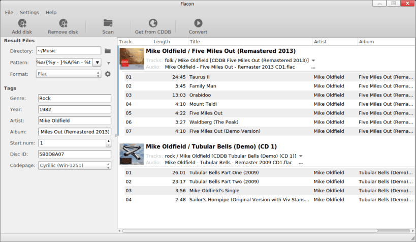 Flacon extracts individual tracks from one big audio file containing the entire album of music and saves them as separate audio files. To do this, it uses information from the appropriate CUE file. Besides, Flacon makes it possible to conveniently revise or specify tags both for all tracks at once or for each tag separately.