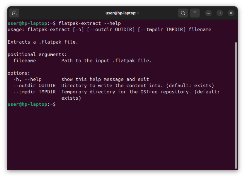 usage: flatpak-extract [-h] [--outdir OUTDIR] [--tmpdir TMPDIR] filename