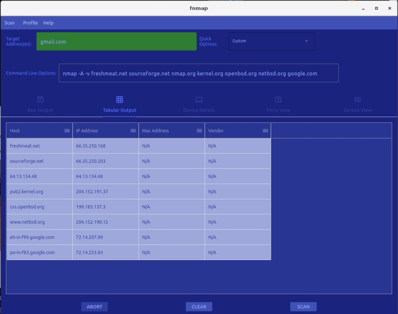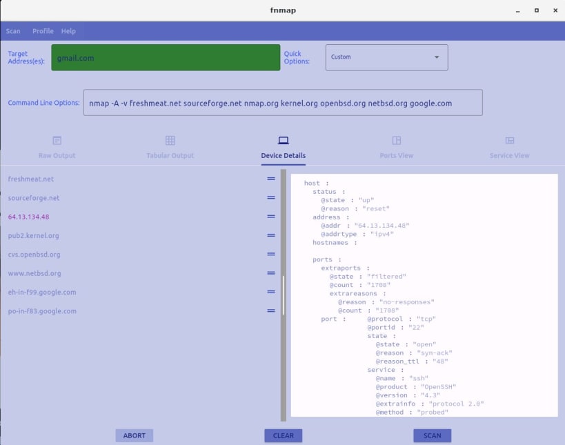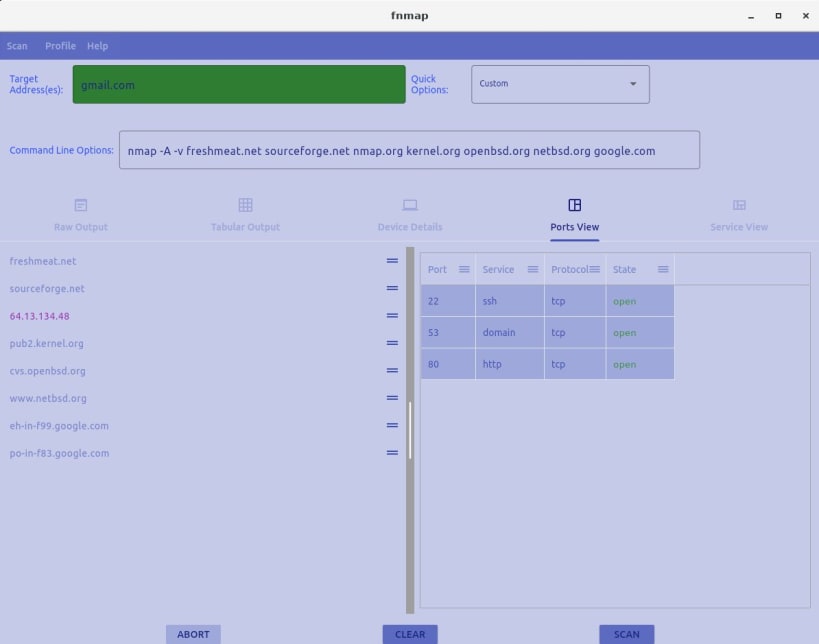 fnmap is a GUI for nmap that runs and parses the output of nmap and provides different views of the data.