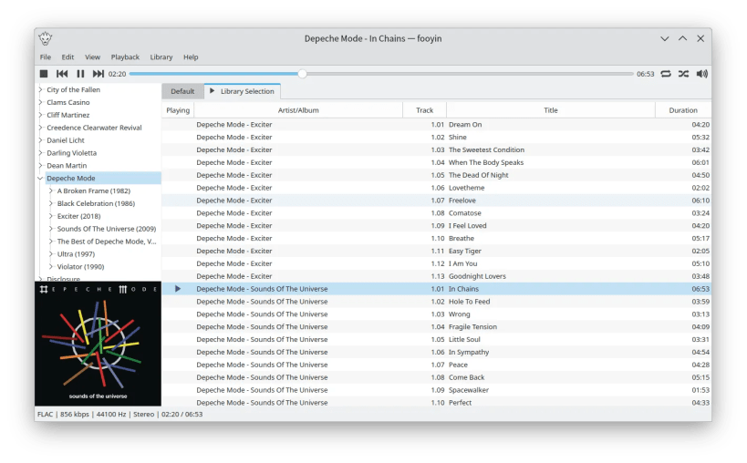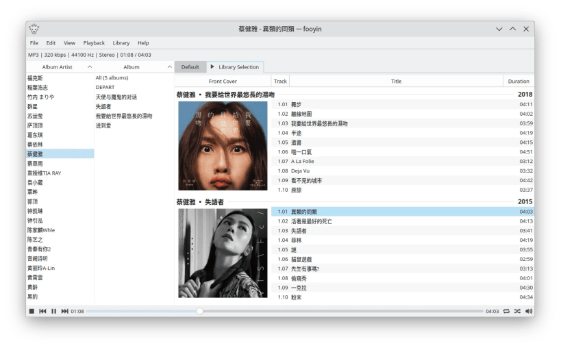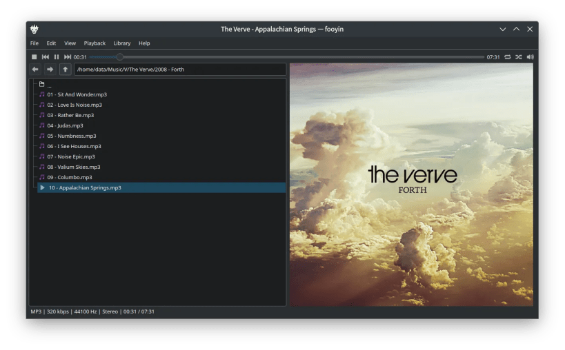 fooyin is a music player built around customisation. It provides a variety of widgets to help you manage and play your local collection. It's highly extensible with a plugin system and includes FooScript, a scripting language for advanced configuration of widgets.