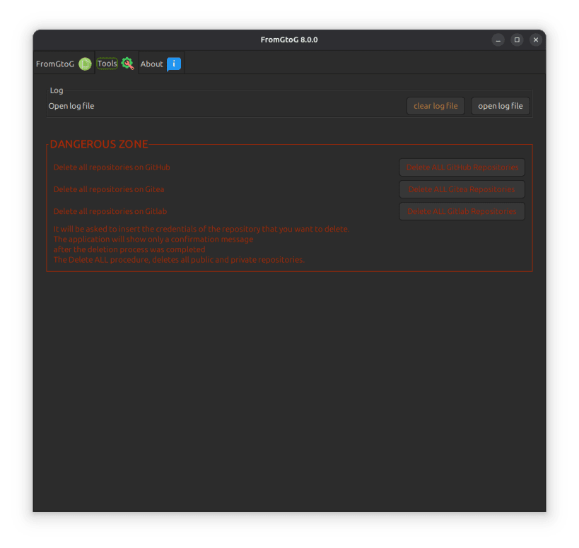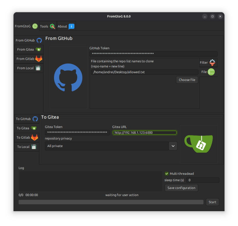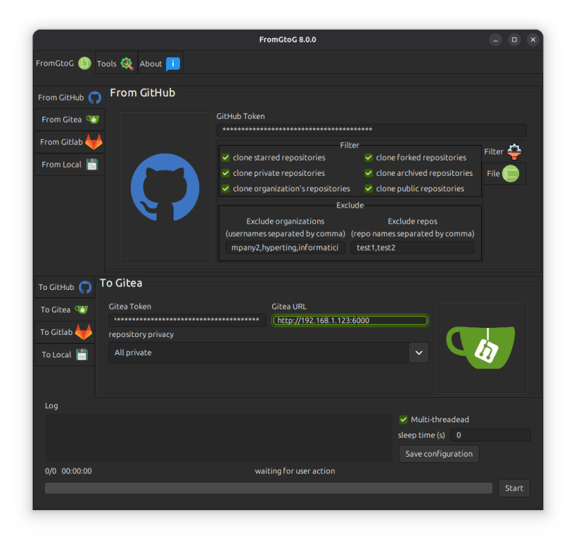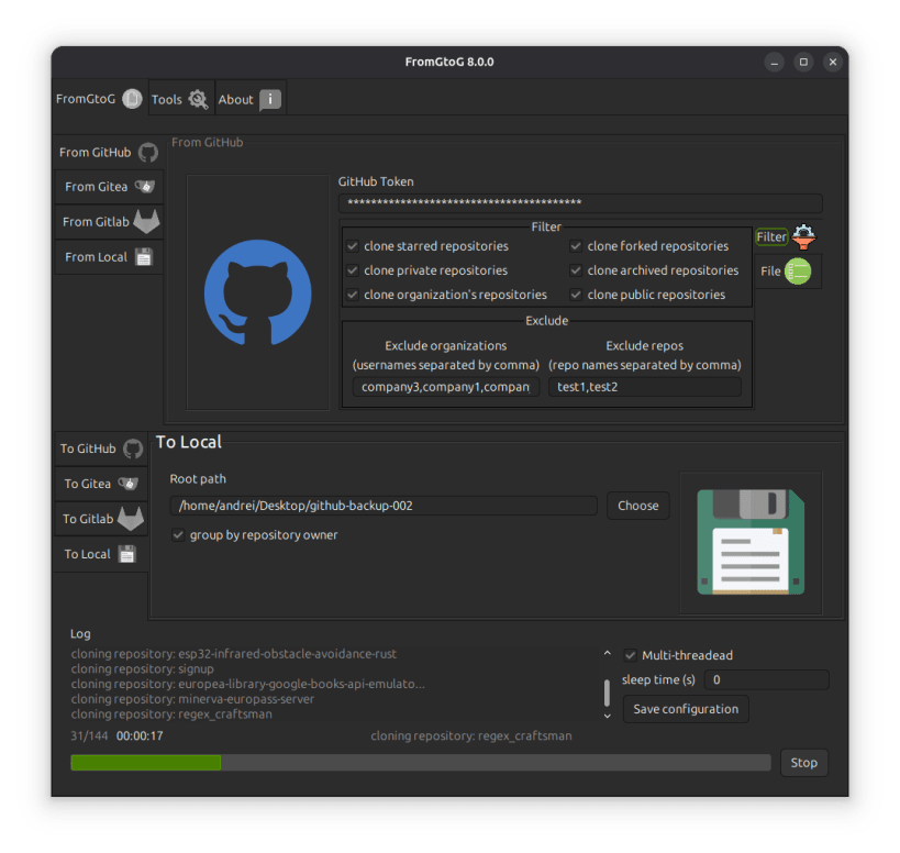 FromGtoG is a cross-platform open-source desktop utility for developers that helps to clone, so that, backup, the repositories:
