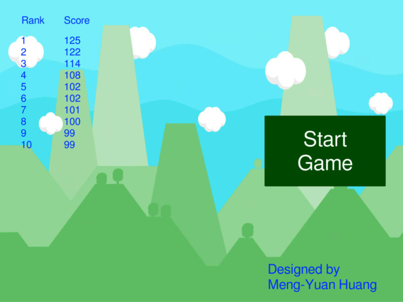 遊戲結束後,分數若能超過排行榜前10名任一名,則會記錄分數。