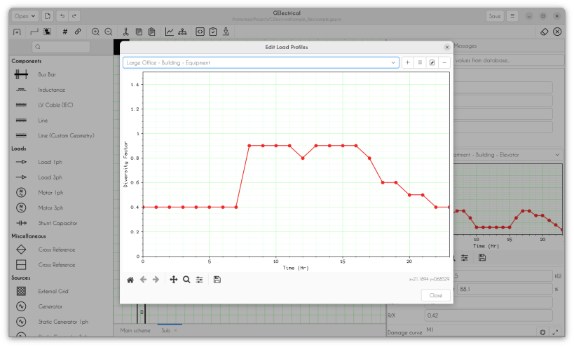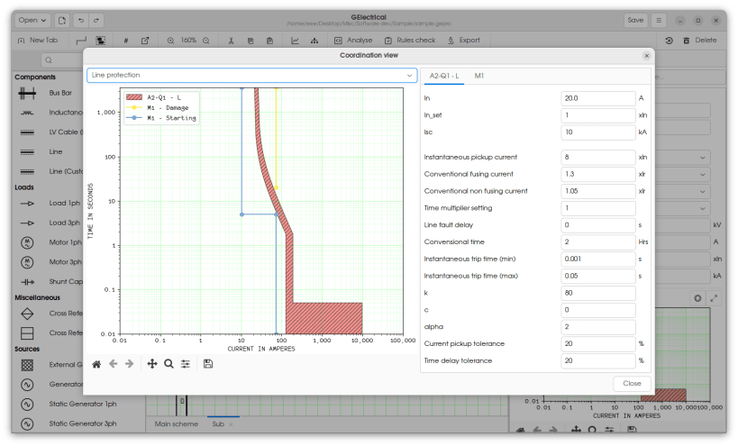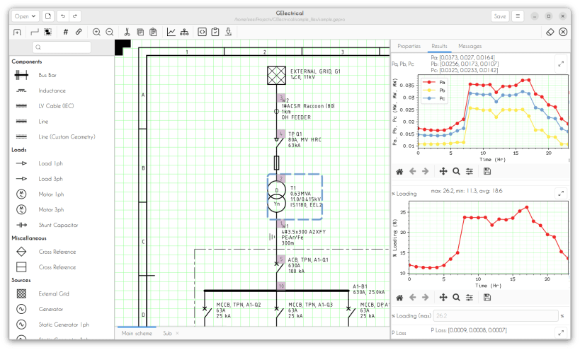 GElectrical is a free and opensource electrical system analysis software for LV/MV electrical distribution networks. Following features are currently implemented.