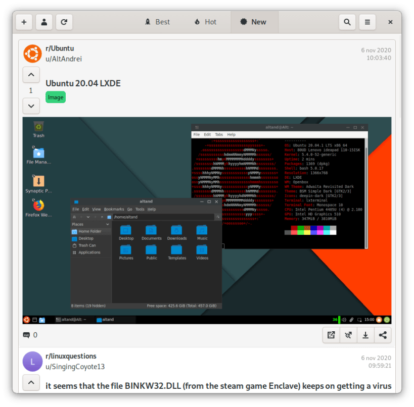 Giara is a reddit app, built with Python, GTK and Handy. Created with mobile Linux in mind.