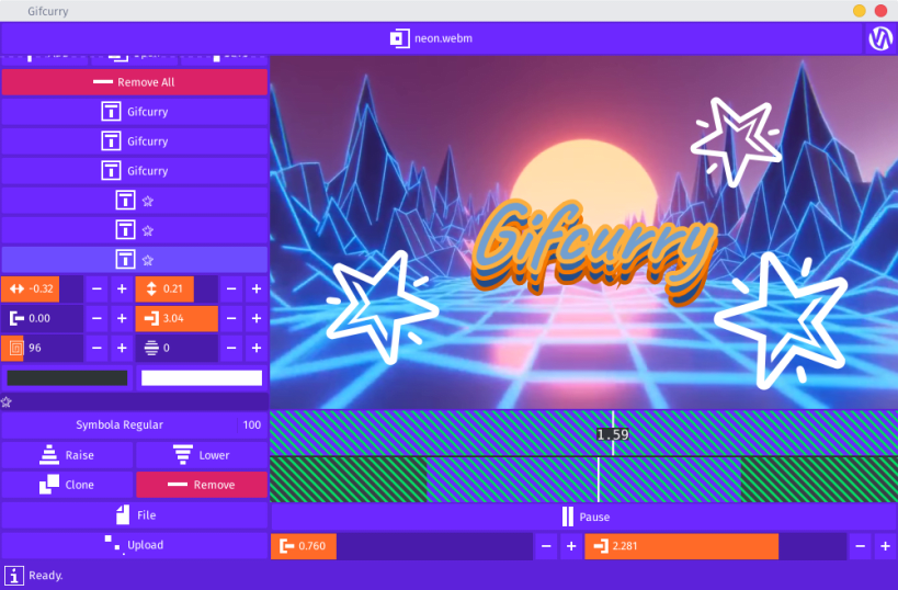 Gifcurry is the open-source, Haskell-built video editor for GIF makers. Import a video, trim, crop, add text, pick a font, set the size, enable dithering, import subtitles, and save your creation as either a GIF or a video. Making GIFs with Gifcurry is fun!