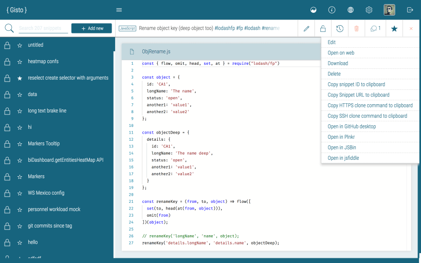 Cross-platform snippets management desktop application