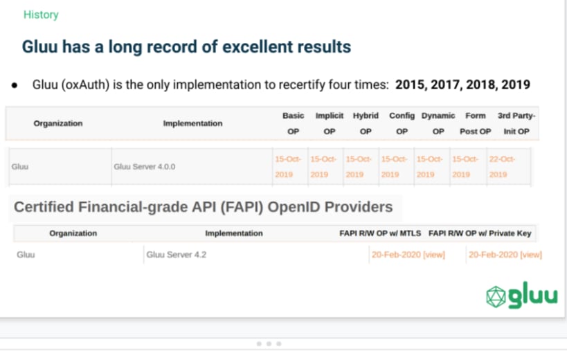The Gluu Server is an identity and access management platform comprised of open source components. The main use cases is single sign-on (SSO), or centralized authentication and authorization. The Gluu Server is one of the best OpenID Connect providers available (see https://openid.net/certification). Other use cases for Gluu include centralized two-factor authentication and OAuth client authentication. This SNAP distribution of the Gluu Server is beta... so proceed with caution. Your deployment feedback is welcome! Please register and post at our support portal: https://support.gluu.org.
