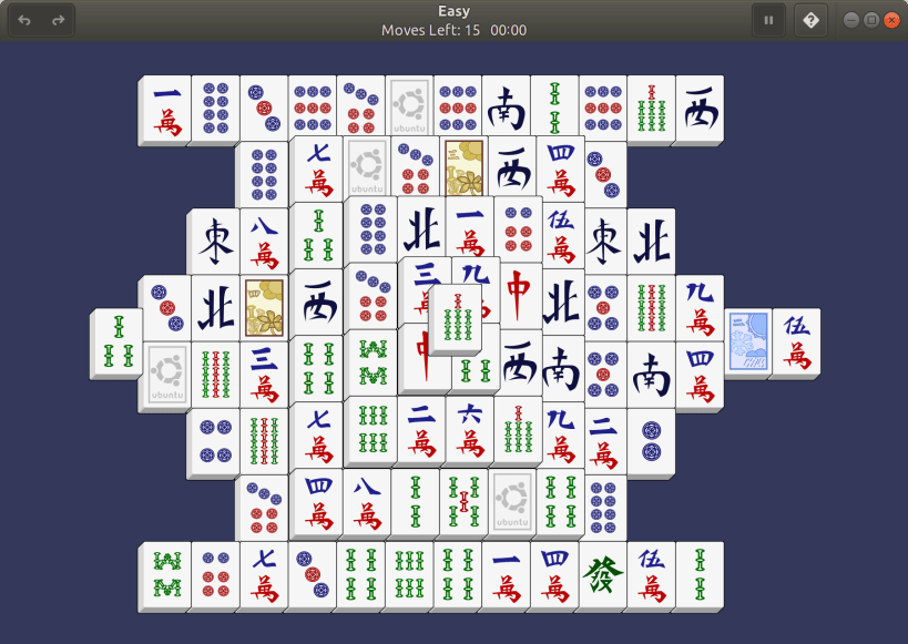 GNOME Mahjongg features a variety of starting layouts, some easy and some difficult. If you get stuck, you can ask for a hint, but this adds a large time penalty.