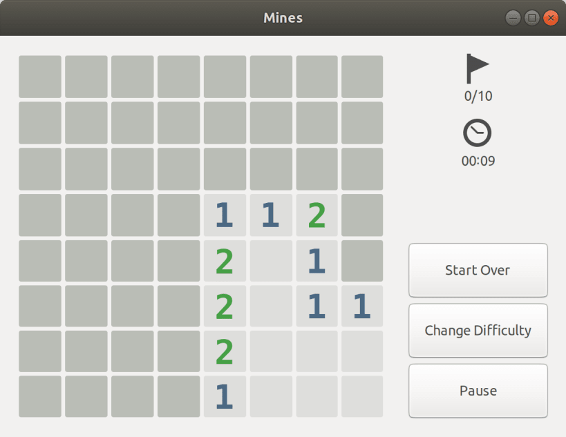 GNOME Mines is a puzzle game where you search for hidden mines. Flag the spaces with mines as quickly as possible to make the board a safer place. You win the game when you’ve flagged every mine on the board. Be careful not to trigger one, or the game is over!