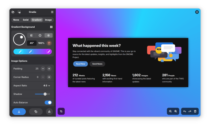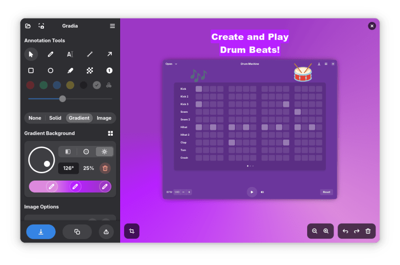 Gradia helps you get your screenshots ready for sharing, whether quickly with friends or colleagues, or professionally with the entire world.
