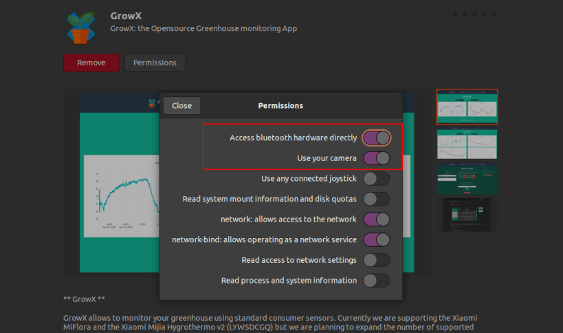 "sudo snap connect growx:bluetooth-control" needed for bluetooth