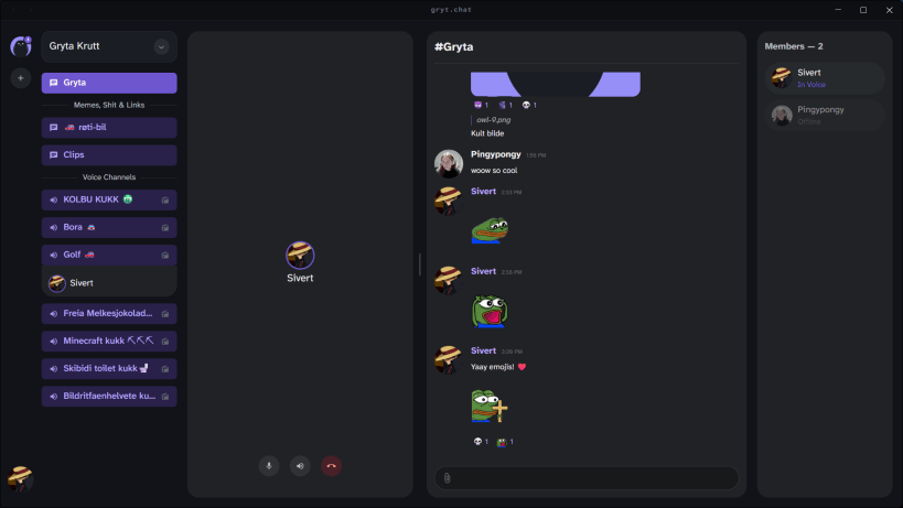 Description: Gryt is a self-hostable, real-time voice and text chat application. Host your own server and connect with friends, teammates, or communities with low-latency WebRTC audio, screen sharing, and text channels.