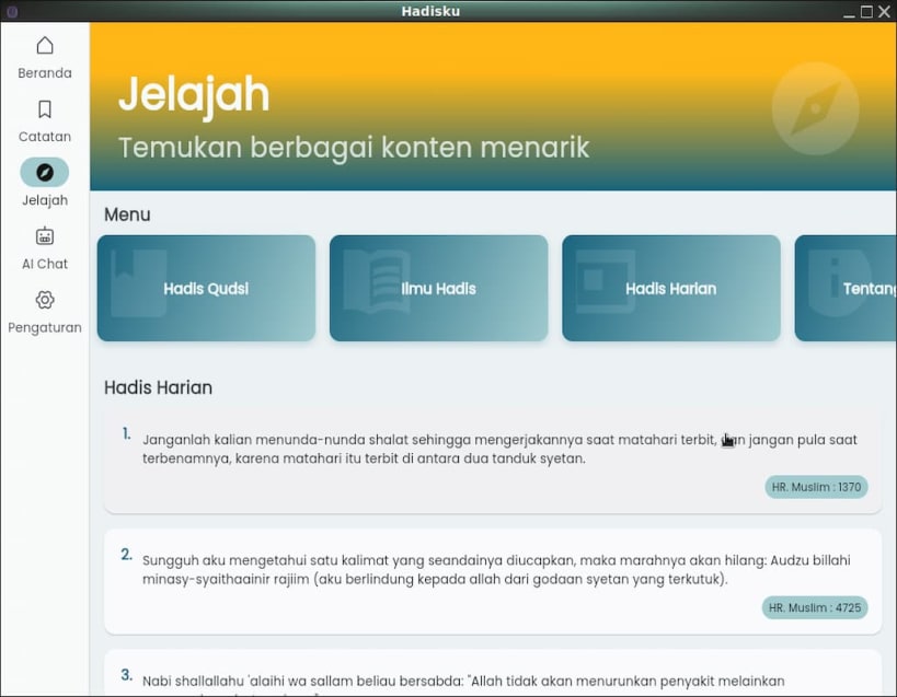 Whether you're deepening your knowledge, teaching, or seeking spiritual guidance, HadisKu provides an accessible digital library of authentic Hadith collections at your fingertips.